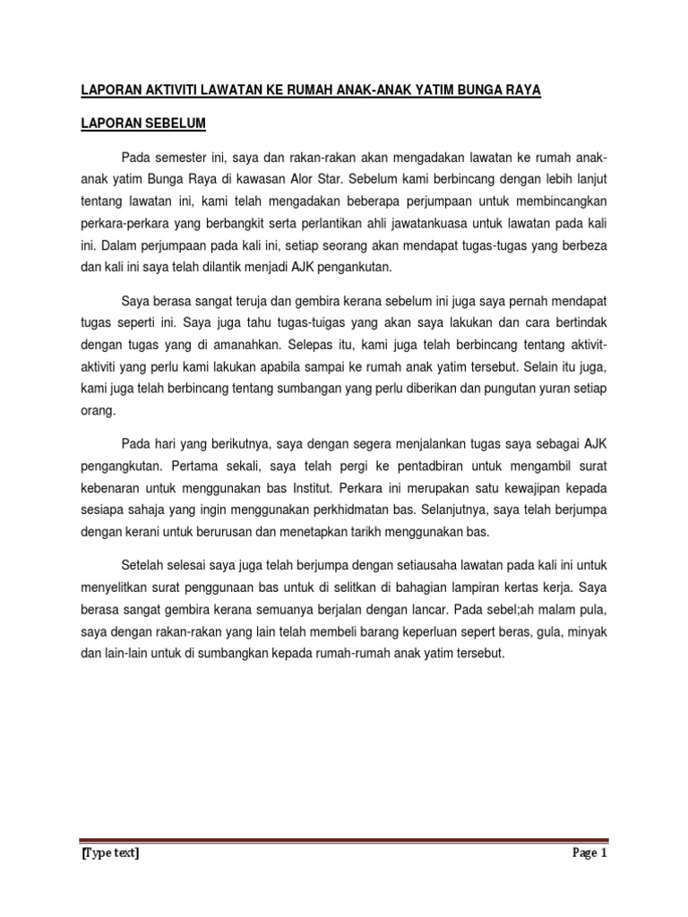 Laporan Aktiviti Lawatan Ke Rumah Anak Anak Yatim Bunga Raya Laporan Sebelum Pdf