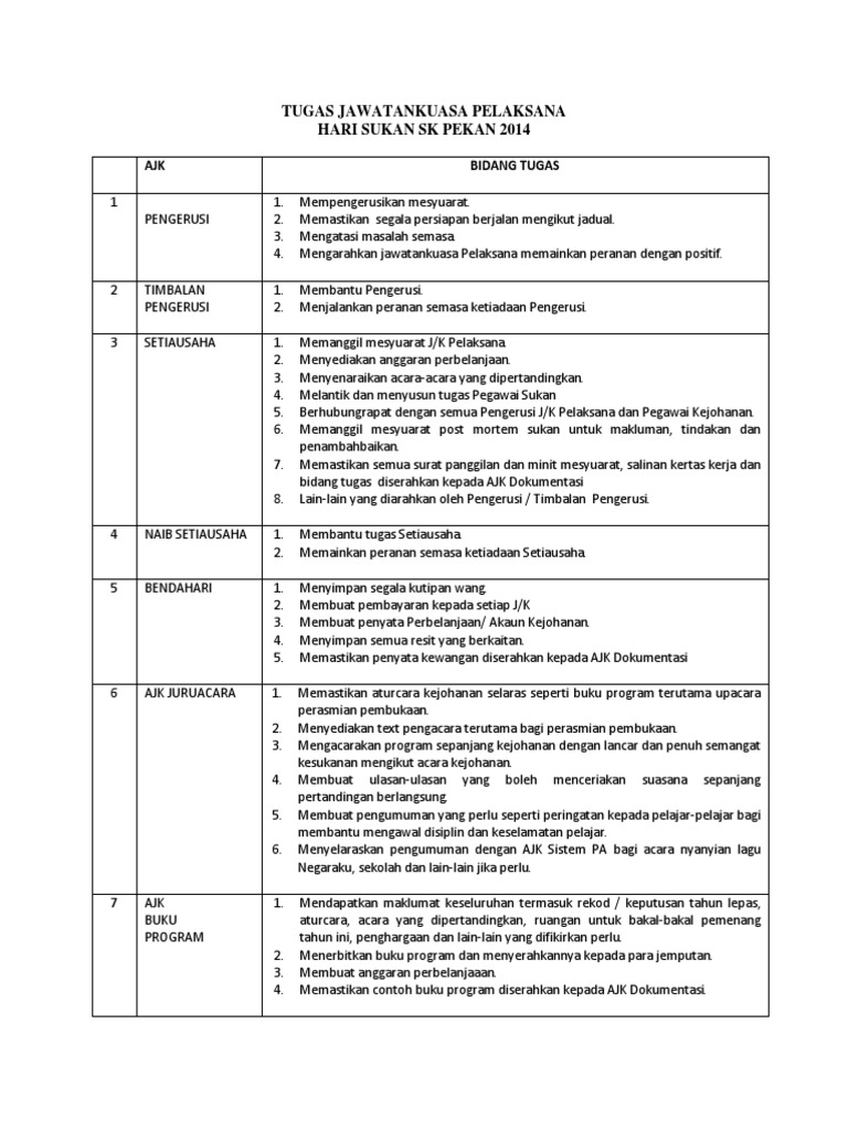 Tugas Jawatankuasa Pelaksana Pdf